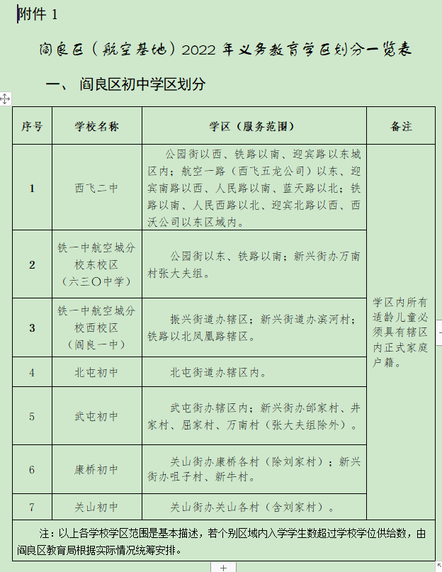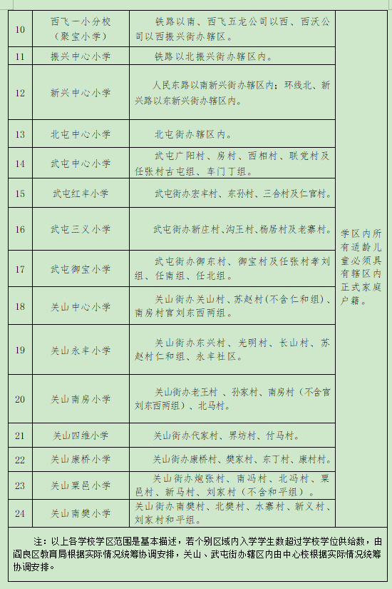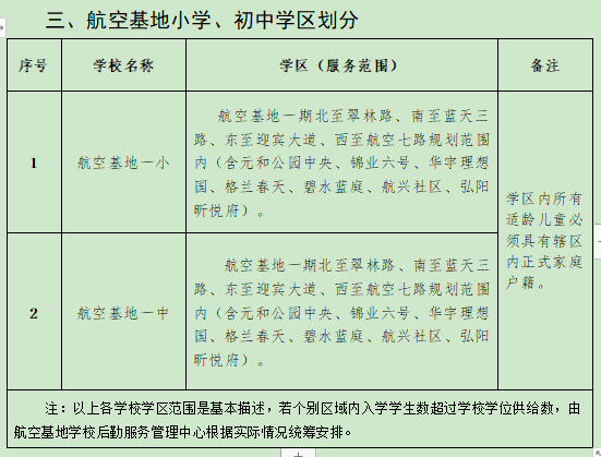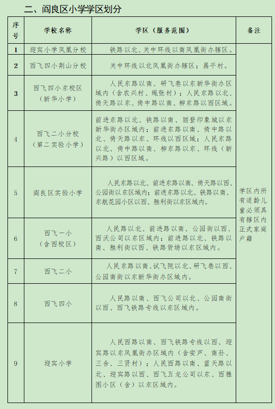 华商网讯 6月22日,阎良区航空基地公布本区域义务教育学校招生入学工作实施方案和学区划分方案,具体划分如下: