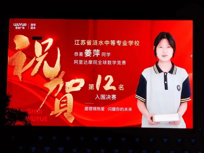 新黄河记者在涟水县城街头还看到,当地的一家商场在户外大屏幕上轮播姜萍获佳绩的喜报。该商业广场相关负责人表示,这个喜报是轮播的,针对家乡这种正能量事情,他们都是第一时间投放。目前每天会有很多市民、游客在网上刷到(喜报)后赶往现场打卡。