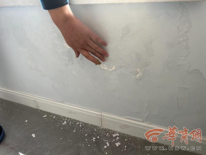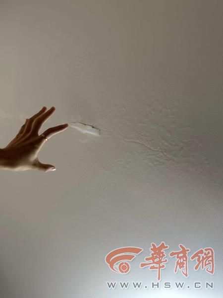 10月8日上午,华商报大风新闻记者上到06户型的孙女士家里,她家次卧天花板上也渗水起皮,“以为是楼上渗水,上去看了,楼上的地面啥都好着,后来联系了物业,说是楼体有钢筋裂缝,没处理严实。”