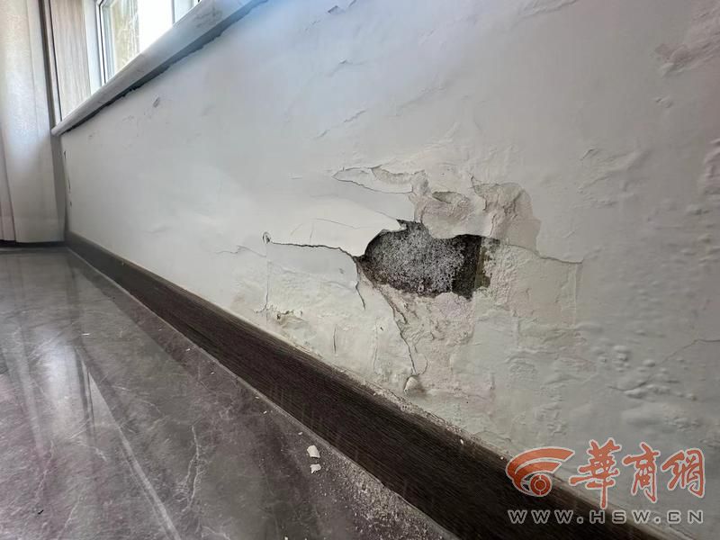 时间长了,墙皮上就起皮,还往下掉。今年7月,实在是看不下去了,张先生就找人把那片墙重新刷了一下,可最近一段时间,墙壁再次渗水,“刷墙无法解决根本问题。”