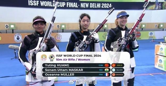 北京时间10月15日,国际射联射击世界杯总决赛继续在印度新德里进行。女子10米气步枪决赛,中国选手黄雨婷以254.5环的好成绩摘得金牌,打破了该项目的决赛世界纪录,这也是她获得的首枚世界杯总决赛个人项目金牌。