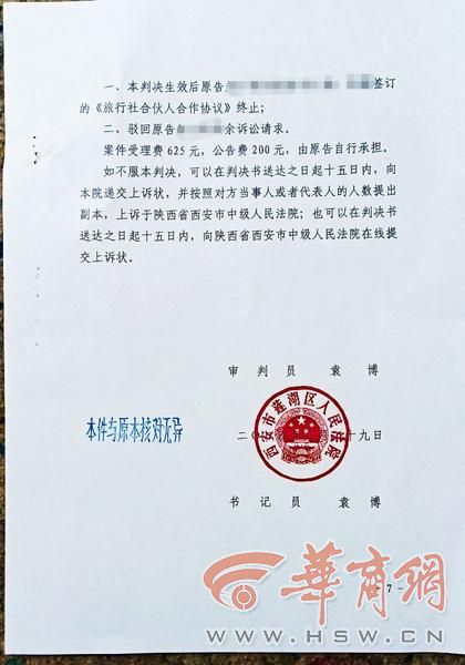 今年8月,莲湖区法院做出了一审判决,判决书上说,原被告均确认三方系合伙关系,赵、冯只负责出资,参与盈余分配,陈负责经营。三方均同意提前散伙,原告对被告提供的合伙期间的经营资料认为没有证据佐证拒绝核对,也不申请司法鉴定。两名被告亦不申请司法鉴定。被告陕西中国旅行社有限责任公司长安分公司未出庭应诉,亦未提交证据。