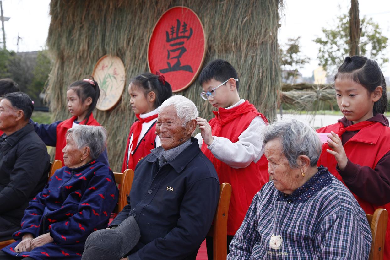 10月26日,在江苏省海安高新区隆政街道联合村俞万家庭农场举办的“金秋稻田 相遇重阳”稻田游园会敬老仪式上,小志愿者为老人梳头。新华社发(顾彬斌摄)