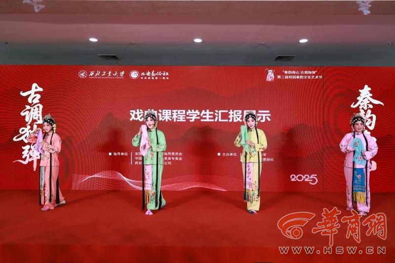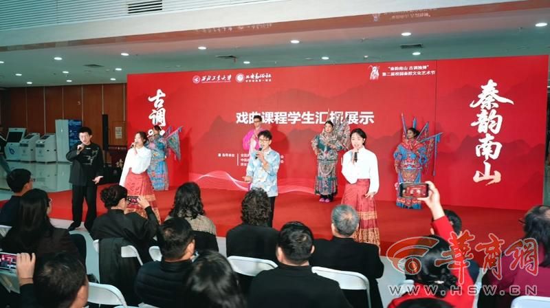 开幕式上,西工大秦腔美育课程“秦腔舞台呈现”“秦腔艺术鉴赏”课程学生进行汇报展示,稚嫩、真挚的唱腔再现了“青春与传统对话”的生动图景。西安易俗社艺术家随后进行表演,让秦腔在校园演绎,为师生带来一场兼具艺术美感与文化温度的浸润表演。