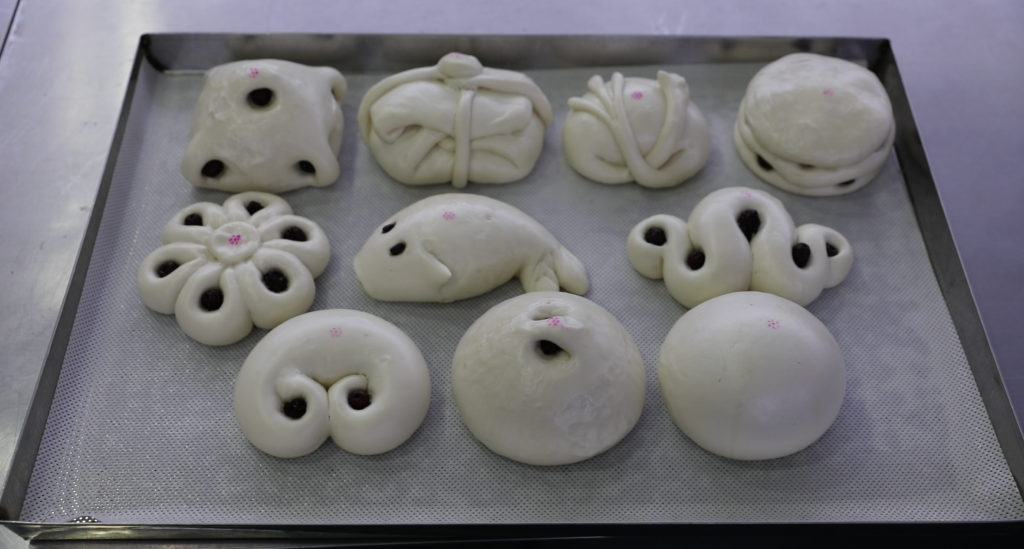 在闻喜当地,不少人过生日的时候订购花馍而非西式蛋糕。通过重新设计花馍形象,卫柯汝让花馍尽可能适应不同年龄段顾客的审美要求。跟红白喜事用的花馍不同的是,这种生日用的馍通过果蔬汁染色,既好看,又健康,就像“可食用手办”,受到小孩子喜欢。