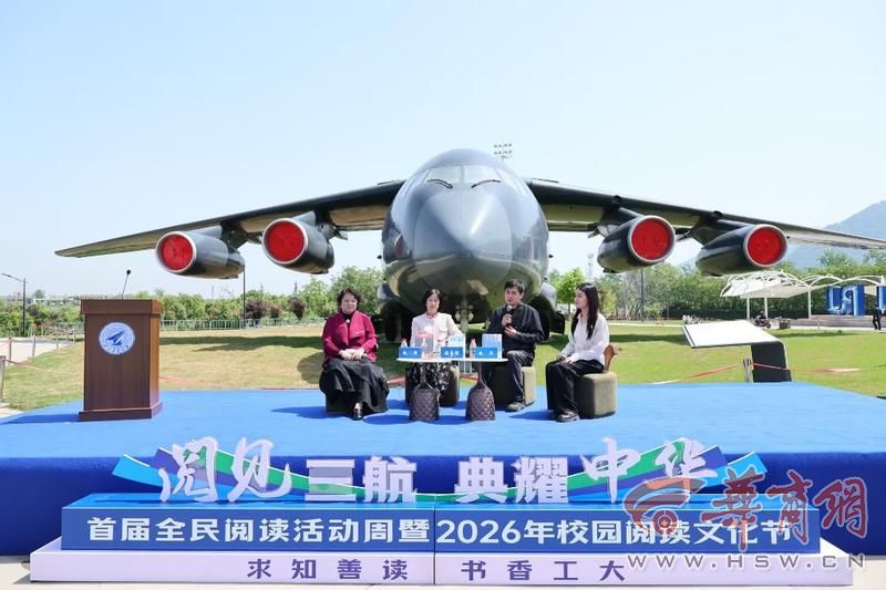 春和景明,书香满园。2026年4月23日,第31个“世界读书日”如约而至,恰逢《全民阅读促进条例》正式实施元年。西北工业大学校园内,一场连接科技与文学的精神盛宴——“大国重器”报告文学作家行活动,在军工素质教育实践中心外场运-20“鲲鹏”大型运输机旁隆重举行。本次活动由西北工业大学出版社、图书馆联合主办,旨在以报告文学为桥梁,挖掘“三航”(航空、航天、航海)科技文化内涵,传承“为国铸剑”精神,推动全民阅读深入校园、辐射社会。